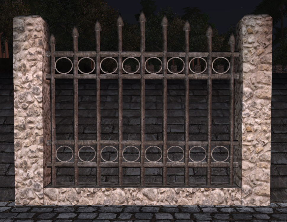 File:Rounded stone high iron fence.jpg