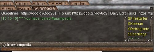 - Any IRC commands through Wurm Online can be done in 2 ways: