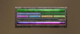 Hovering the mouse over any of these bars will provide more information on the overall player status. Use the right mouse button on the bar to select which information to display. Descriptions are top to bottom, reading left to right.