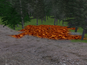 Flamgra'in used to be a volcano in the northeastern area of Independence on the Freedom Isles server. The volcano has long ceased activity and is slumbering ever since, developing a thriving flora and fauna. The remainder of this lava spitting giant is the distinct, circular shape of its opening crater, forming the coastal line mainly as rock. But most of all and still impressing, the smoking pond of lava in its center, keeping an adjacent tar pit steaming hot.