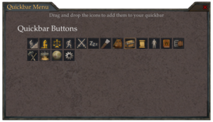 - The quickbar consists of two rows for slots, each slot able to hold an item or a quick bar button
