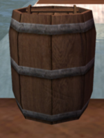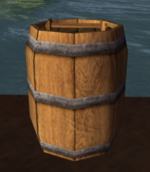 - Some items can be placed on top of a small barrel, as decoration. Since the item is a container already, any items placed on it will be dropped on the ground when it is picked up; a message in event log will notify the player of this.