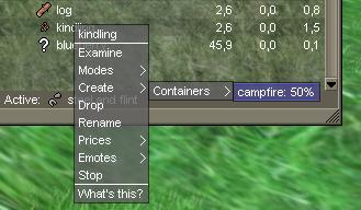 Note: The campfire needs fuel to burn. If have more log, activate it and right-click the fire and select burn. You will need to fuel the fire with about 20 kg of wood every hour or so, you can see its status by examining. If it does not say “The fire burns steadily and will burn for a long time.” You need to put on fuel.